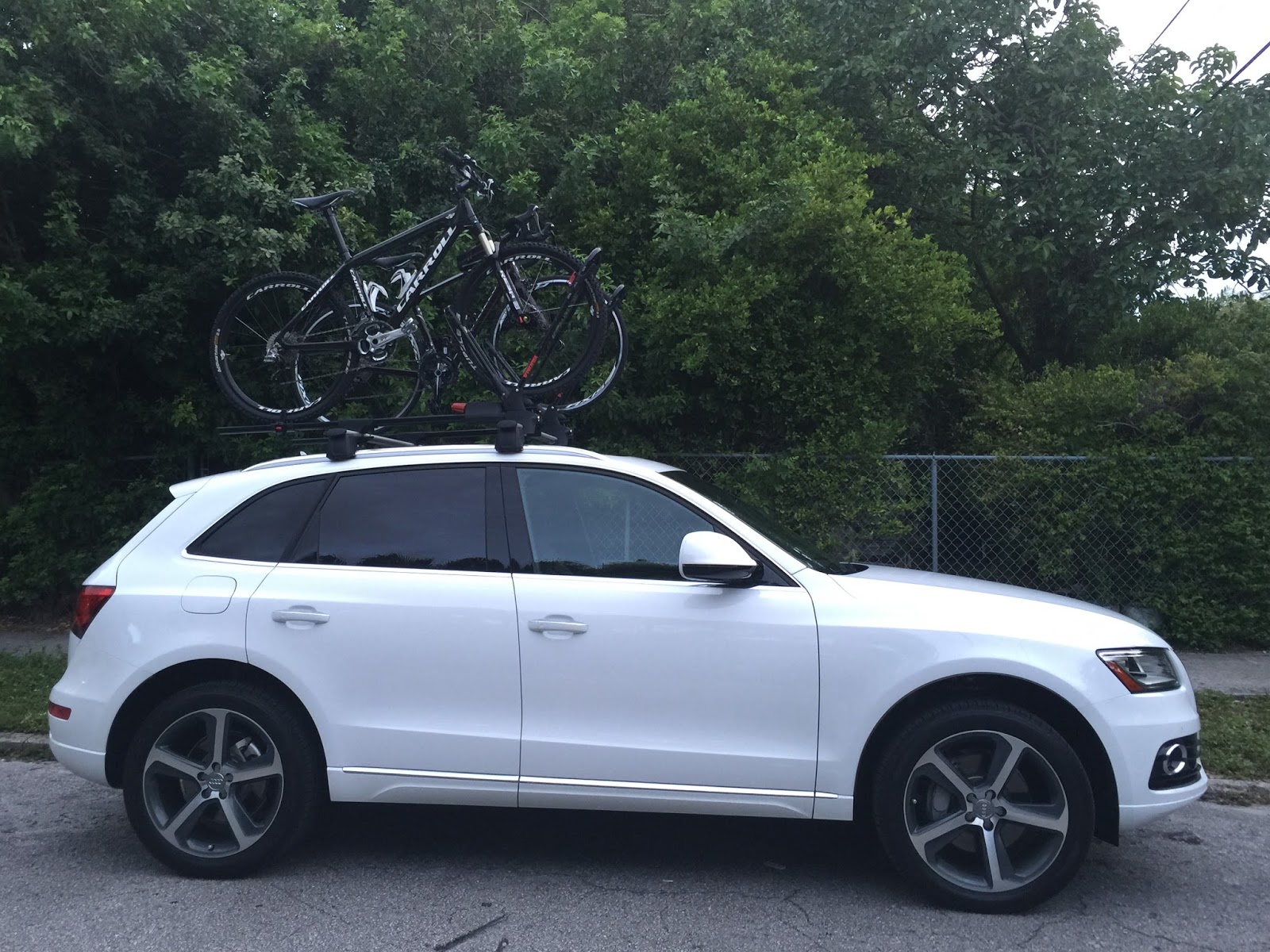The base rack is made by Thule specifically for Audi and most closely resembles the Rapid Podium rack with AeroBlade crossbars. This rack is low profile and the crossbars are the most aerodynamic on the market. The Yakima Frontloader bike racks can transport any size bike and any frame design. The frontloader is the easiest bike rack on the market to assemble and install. Its also super easy to load up and go.